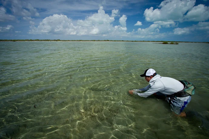 We fished in the Eastern end of the Gardens of the King Archipeligo, around the area known as Cayo Cruz. This was Teddy's first time fishing in warm salt water. Wouldn't you know, he jumped and fought a 100 pound Tarpon in his first ten minutes, landed a bunch of bones including one around 7 pounds, and then landed a nice Tarpon to end the day? Luck of the beginner. Many thanks to Boris at La Casona, and Matias at Avalon in helping us to arrange this.